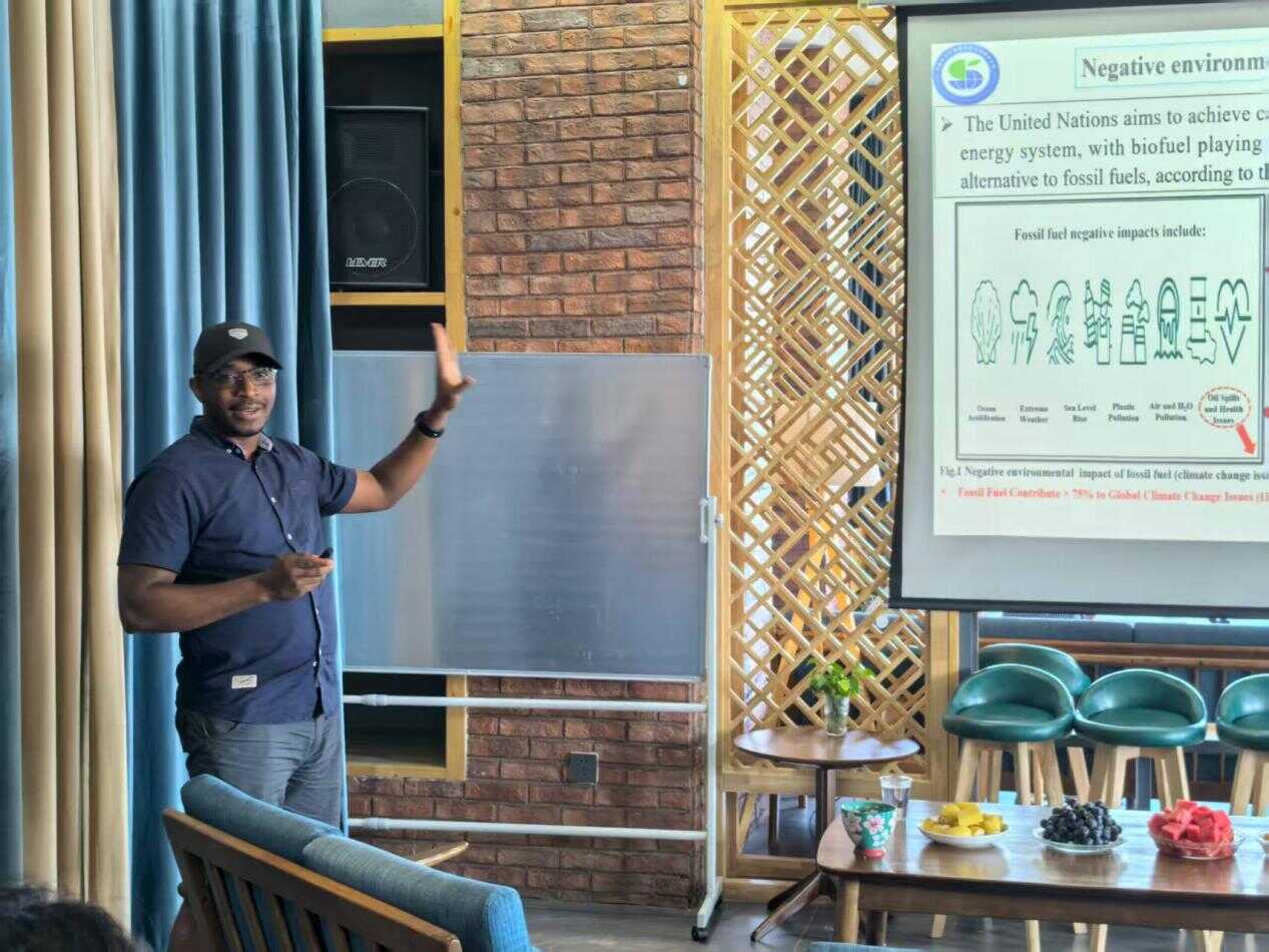 ????Collins Elendu博士的報(bào)告以《Optimized and sustainable approach for biofuel production to combat harmful emissions》為題,聚焦生物燃料可持續(xù)發(fā)展路徑,系統(tǒng)分析了尼日利亞、中國(guó)等國(guó)家在生物燃料領(lǐng)域的應(yīng)用現(xiàn)狀與發(fā)展需求。報(bào)告重點(diǎn)探討了生物燃料生產(chǎn)技術(shù)的優(yōu)化策略,特別是針對(duì)有害氣體及污染物排放控制的解決方案,為行業(yè)規(guī)?;瘧?yīng)用提供了切實(shí)可行的技術(shù)路線圖。Elendu博士指出,當(dāng)前技術(shù)轉(zhuǎn)化面臨的核心瓶頸在于實(shí)驗(yàn)室成果向工業(yè)化生產(chǎn)的低成本轉(zhuǎn)化問題。他強(qiáng)調(diào),只有突破這一制約因素,才能實(shí)現(xiàn)生物燃料技術(shù)的大規(guī)模推廣應(yīng)用。