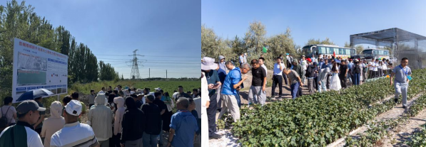 ????8月20日下午,參會人員實地考察了石河子市重度和輕中度鹽堿地改良示范區(qū),石河子大學(xué)張風(fēng)華教授系統(tǒng)介紹了其團(tuán)隊在中重度鹽堿地節(jié)水控鹽與增碳培肥等方面的成果,通過技術(shù)集成和模式創(chuàng)新,充分破除鹽堿地土壤障礙因子,并提升了土壤地力。這些技術(shù)展示,使參觀人員對新疆鹽堿地的綜合治理有了更加深入的了解,對促進(jìn)高校、科研院所和企業(yè)之間的交流與合作,推動干旱區(qū)鹽堿地綜合改造利用與產(chǎn)能提升具有重要意義。