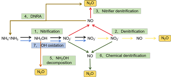 圖2:·OH氧化作用促進(jìn)N2O釋放機(jī)制圖