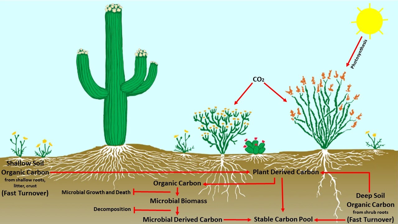 圖2:荒漠植被扮演的碳匯角色:與微生物過程聯(lián)動(dòng)形成穩(wěn)定碳庫(kù)?