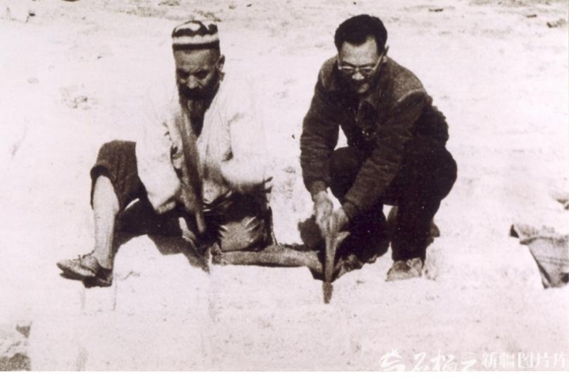 彭加木(右)采集土壤樣本。圖/中國(guó)科學(xué)院新疆分院提供
